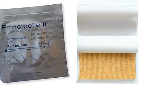 Principelle IF wondverband is een antimicrobieel, MMP en pH regulerend wondcontactverband. Het verband bestaat uit een niet-reagerend (inert) acetaat gaas geïmpregneerd met een concentreerde ionogene formulering van mineralen en spoorelementen en donkere boekweithoning.